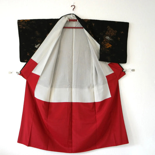 Komon (Awase) – Tsumugi Silk Blend – Scenic Landscape, Taishō Roman – Black×Bronze – 151.5/63/48.5