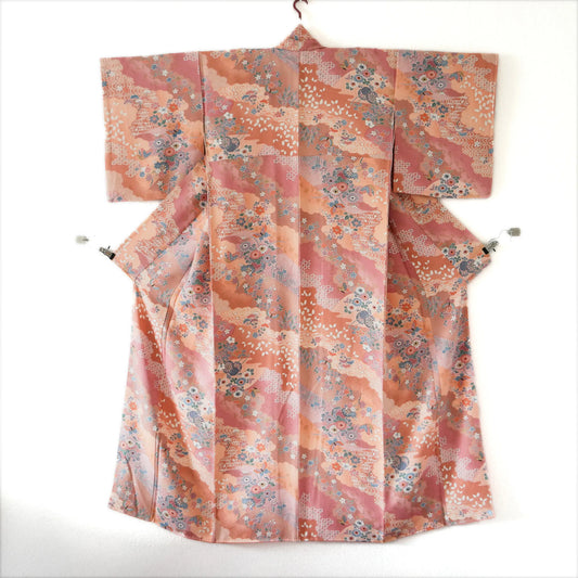 Komon (Awase) – Silk Chirimen – Peach Pink, Florals & Butterflies – 162/63/47