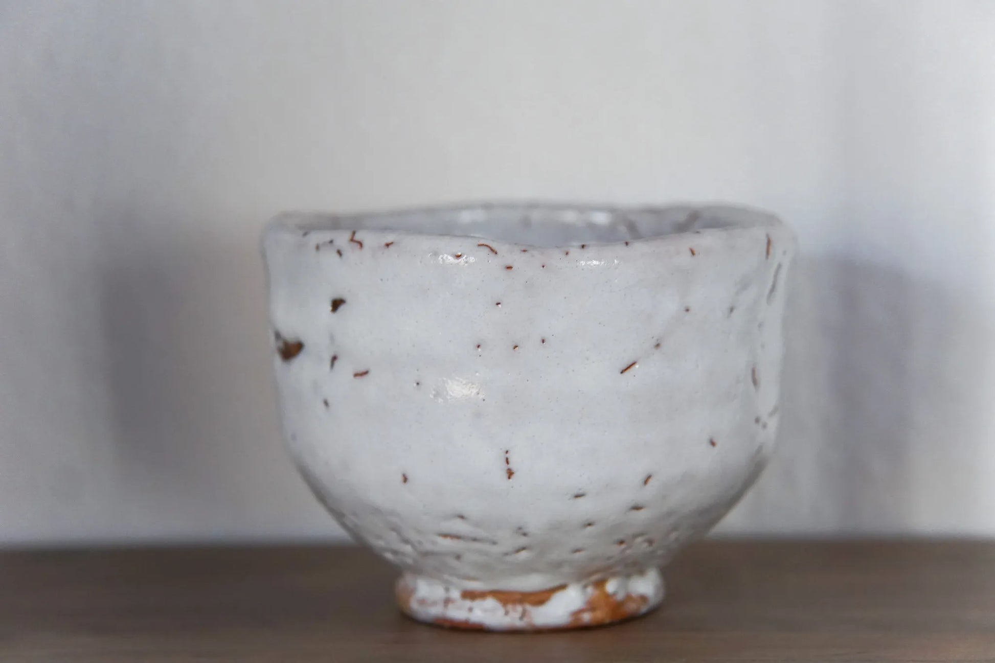 A finely crafted Hagi-yaki chawan by Kunisuke Nakahara, showcasing the understated refinement characteristic of Hagi ware. The white glaze is balanced with exposed clay tones and natural iron spotting, creating a surface that reflects both intention and material honesty. Subtle textural variations, pinholes, and kiln effects are integral to the Hagi tradition and contribute to the bowl’s presence as a functional and collectible piece.